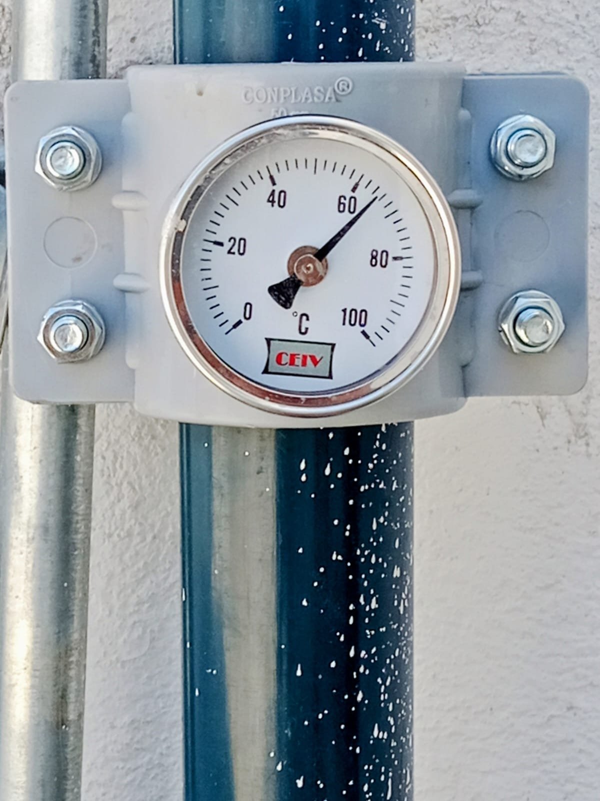 Debido a las temperaturas extremas de la localidad, se instalo un intercambiador de calor y solución de glicol en paneles, para evitar riesgo de congelamiento de agua en los paneles en invierno. Este tipo de instalación además incrementa la temperatura obtenida en aprox. 10 grados.